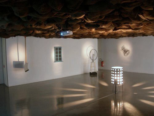 Séparée en deux parties, l’exposition regroupe d’un côté une dizaine d’œuvres et s’ouvre par le magnifique Gonzalez-Torres Untitled (America) qui part des rideaux d’ampoules et guirlandes de l’États-unien pour proposer des séries d’ampoules tombant du plafond et formant des petits agglomérats au sol. Plus loin, c’est Joseph Beuys et Frank Stella qui serviront de fondement à la 3 Beuys Fatchairs (chaise et prisme de graisse) et au Stella Union Pacific (tableau présentant des lignes minimales). Mais, à tout seigneur, tout honneur, c’est Marcel Duchamp qui fait l’objet de la plus grande attention pour Elaine Sturtevant. Duchamp Nu descendant un escalier mixe ainsi le Duchamp Ciné (projection murale d’une spirale tourbillonnante) et une suite de readymades duchampiens visibles à travers un œilleton percé dans le mur tandis que la grande installation Duchamp 1200 Coal Bags est composée de onze readymades du Français (évidemment la Fontaine, la Roue de Bicyclette et tous leurs congénères).