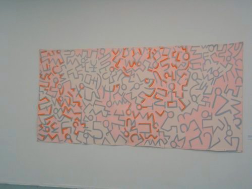 Ce qui frappe en parcourant l’exposition, c’est que Sturtevant sait se faire révérante à l’égard des artistes qu’elle reprend (Beuys, Gonzalez-Torres, Duchamp) mais aussi s’en détacher avec une forme d’ironie distante. La peinture Haring Untitled reprend par exemple les bonshommes de Keith Haring mais avec un trait simplifié qui les rapproche encore plus du street art, voire du dessin grossier d’enfant. Dérision aussi avec la présence de The House of Horrors, mini-train fantôme installé à l’intérieur même du musée et qui nous permet de retrouver des figures du genre (Frankenstein, squelette, chauves-souris). Le principe même de cette attraction peut alors rejaillir sur l’autre aile de l’exposition : ne s’agirait-il pas d’un grand LunaPark avec des œuvres majeures du XXe siècle alignées comme à la foire ? Plus généralement, Sturtevant nous conduit à nous demander si tous les musées n’auraient pas tendance à verser dans la monstration « Reader’s Digest » et allégée, voire divertissante.