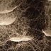 C’est ainsi que la grande salle courbe du niveau principal, plongée dans le noir, et dotée de plusieurs dizaines de toiles d’araignée, simplement enchâssées dans des cadres cubiques et subtilement mises en lumière, produit un effet esthétique saisissant (Webs of At-tent(s)ion). D’une toile à l’autre, on passe ainsi d’un travail proche de la dentelle à des formes plus lâches ou bien encore à des enchevêtrements très ouvragés. Découpées par les spots, réagissant aux oscillations de l’air résultant du passage du public (en l’absence de verre ou de plexiglas de protection), les toiles d’araignée se voient conférer une vibration propre et singulière. Magnifiée dans Sounding The Air, celle-ci permet à cinq fils de soie de flotter dans l’espace, au gré de la présence des spectateurs, traduisant également la collaboration de Tomás Saraceno avec des scientifiques et arachnologues, à même d’élaborer des algorithmes captant les mouvements pour les transformer en données et sons.