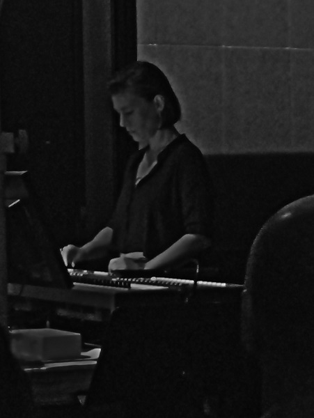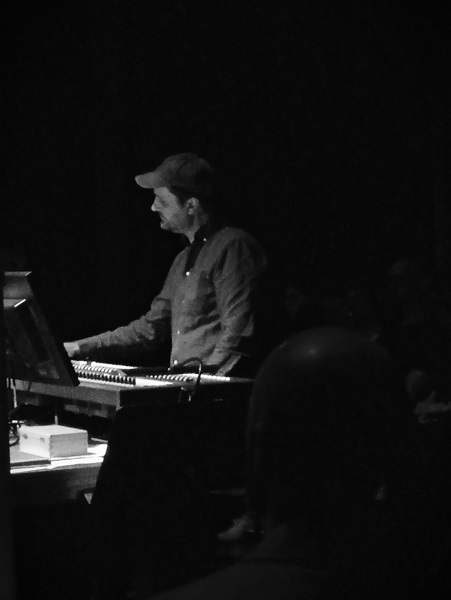 La lumière vira au bleuté pour accueillir Electronic Stabile, pièce d’une demi-heure de Roland Kayn, diffusée par Jules Négrier et faite de sons métalliques et industriels. Pour terminer, place à Lisa Lerkenfeldt, assise derrière un piano droit et qui lança une petite boucle électronique sur laquelle elle plaçait des accords de piano épars, laissant la résonance et utilisant même un delay sur certains. Un réel sentiment de chaleur et de grande proximité avec la musique de l’Australienne se développa alors, accentué par la disposition d’ensemble et son positionnement central. Superposant délicatement ses accords, Lisa Lerkenfeldt conclut en intégrant des sons issus d’un magnétophone à bande, conservant néanmoins sa volonté de proposer quelque chose de très apaisé.