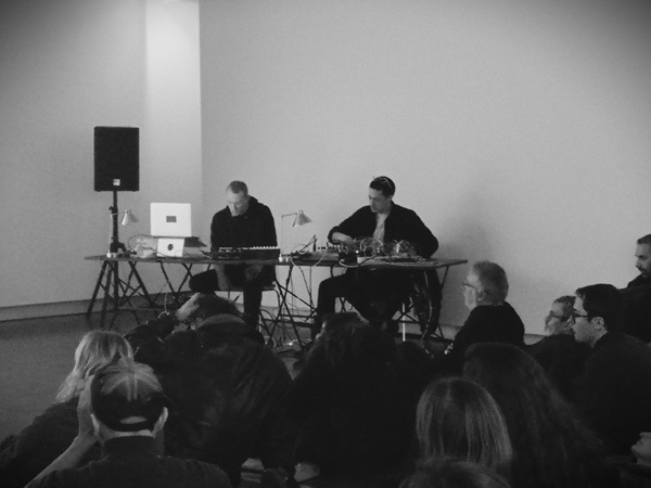 Quelques jours avant la fin de l’exposition de Marie Quéau, l’artiste invita deux musiciens français à se produire dans la salle du rez-de-chaussée du Bal, en regard de la diffusion d’une version alternative de sa vidéo Mi-chemin avant récupération. Devant un public attentif et mixte (quelques enfants, aux côtés de spectateurs plus habitués du lieu), la courte soirée, qui affichait complet, débuta même avant que la porte ne se fermât puisque la vidéo tournait déjà en boucle et qu’Oliver Clément lança sa musique sans attente.
