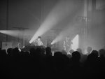 Servi par une grosse dose de fumée et de superbes lumières (laser rouges ou verts émanant de sept cercles situés sur le mur de fond de scène, ou bien deux pans verticaux blancs qui compartimentèrent presque la salle), Lol K livra des morceaux qu’on aurait parfois aimé être arrêtés moins tôt, et qui se montrèrent beaucoup moins singuliers en l’absence d’électronique (tel ce titre avec chant contre arpèges de guitare). Rejoints par feeo pour le dernier titre, les Londoniens y gagnèrent la clarté et luminosité de son timbre, pour sortir avec une couleur un peu autre de cette petite quarantaine de minutes.