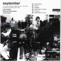 Alors que Limp semble en repos pour un long moment, trois des membres de ce formidable quatuor danois furent invités à se produire ensemble l’an passé, au Phono Festival, situé dans leur ville natale d’Odense. Témoignage de cette réunion qui ne paraît pas être appelée à se pérenniser, September (disque limité à 500 exemplaires, avec un très beau packaging) réunit donc, pour une occasion unique, Jakob Skøtt (Syntaks), Rasmus Rasmussen (Aerosol) et Jonas Munk (Manual).