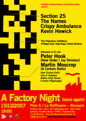 Inutile de faire ici l’historique ou l’apologie du label unique et on ne peut plus essentiel qu’est Factory. On ne compte plus les ouvrages, les articles, les films, les documentaires et les émissions permettant de s’en convaincre. Bruxelles, qui a largement contribué à leur essor au tout début des années 80, les met une fois de plus à l’honneur, à l’endroit même qui accueillit Joy Division les 16 octobre 1979 et 17 janvier 1980 pour deux de leurs premières apparitions sur le continent. Tout un symbole...