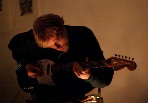 Une petite pause, et c’est The Shooting Star Experiment Of Lights qui débute son set vers 21h10. Le nom est plus long, mais il s’agit toujours d’un projet solo, cette fois à la guitare électrique. La main de Kurtis passe rapidement sur les cordes, créant des nappes ondulantes qui se superposent. Habité par sa musique, le jeune homme se laisse parfois emporter par son instrument et décolle de sa chaise, saisit un e-bow, ustensile indispensable à cette ambient à guitare. Aérienne, voire spatiale, sa musique est ample, évite le pathos qui apparaissait facilement chez Worrytrain, elle n’est pas non plus ludique mais ses diverses machines lui permettent d’expérimenter, d’ajouter quelques bidouillages électroniques comme ces glissandos sifflants faisant penser à une pluie de météorites. La tension monte doucement, Kurtis se lève et fait voler sa guitare à proximité de l’ampli, puis finira par répéter une phrase dans le micro d’un boitier (magnétophone ?), voix noyées dans les nappes de guitares saturées.