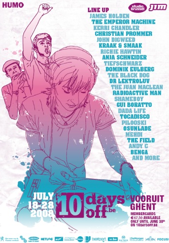 Cela faisait quelques années que, l’âge venant, nous n’étions plus allé aux Ten Days Off, fameux festival électronique qui se déroule comme son nom l’indique sur dix jours, parallèlement aux fêtes de Gand. Cette année, on pointait comme à chaque fois de grands noms, mais insérés dans un programme insuffisamment alléchant pour prendre la route : épinglons ainsi James Holden, John Digweed, Tocadisco, Black Dog, Depth Charge ou Benga. Le mardi 22 proposait en particulier des délices minimaux, en l’honneur du label M_nus du grand Richie Hawtin. Outre le maître en personne, on eût pu profiter entre autres de Barem et Anja Schneider en DJ et de Heartthrob en live.
