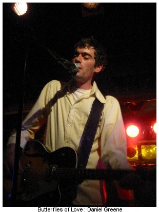 The Butterflies of Love prirent le relais. Il s’agit d’un quintette originaire de New Haven aux Etats-Unis : 2 guitares pour la mélodie, un clavier pour les accents sixties, une rythmique efficace derrière (le batteur officiait auparavant dans Van Pelt, un groupe beaucoup moins pop). Pendant une petite heure, ils enchaînèrent de courtes chansons pop-noisy, mélangeant plusieurs décennies de musique américaine : de Buddy Holly et les groupes à vocalises des années 60 aux guitares noisy des années 80.