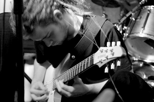 On devrait même parler de trois découvertes puisque ce sont les Sons of Frida qui ouvrent la soirée, un groupe dont nous avions déjà croisé le nom plusieurs fois sans trop savoir dans quel registre ils jouaient. Pour le coup on passera assez rapidement sur leur set qui se révèle être celui qui rentre le moins dans notre ligne éditoriale. Une formation plutôt pop-rock avec le classique trio guitare-basse-batterie enrichi d’une deuxième guitare pour un set qui alternera entre pop instrumentale de part le classicisme de certaines compositions et rock incisif tout en restant purement instrumental, ce qui aurait tendance à les faire basculer parfois vers un post-rock nerveux. Au final on trouvera ce premier set tantôt plaisant, tantôt trop classiquement rock pour véritablement nous intéresser et on quittera la salle un ou deux titres avant la fin de leur concert.