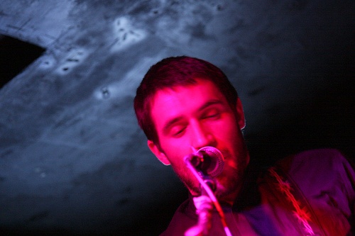 Dernier concert de la soirée, Zero Absolu, projet de Nak originaire d’Annecy. Comme de nombreux artistes Nak nous avait contacté il y a environ 6 mois, nous invitant à jeter une oreille sur son projet. On écoute alors plusieurs titres sur sa page MySpace que l’on trouve intéressants, peut-être aussi quelques vidéos sur YouTube, et tout de suite ce projet nous interpelle, en particulier le fait de le voir absolument seul sur scène. Derrière guitare, clavier et machines, Zero Absolu produit une musique hybride, une sorte de rock engagé empruntant à l’électronique, expérimentant donc naturellement entre ces deux voies, révélant même parfois quelques influences industrielles. À la rigueur, et comme pour Kokoon, on pouvait trouver ça un peu trop rock pour nous, mais sur scène notre sentiment change. Peut-être est-ce la part d’électronique ou plus globalement le style, le son, les expérimentations qui font que notre intérêt pour cette musique reste en éveil. Assez inattendu par exemple ce passage ultra minimaliste et répétitif qui nous fait penser a une version rock d’un Philip Glass / Steve Reich. Sinon on retrouve ces textes engagés sans pour autant faire dans le systématisme, parfois projetés sur l’écran entre deux paysages apaisants. L’artiste ne chôme pas, changeant régulièrement d’instrument, superposant les boucles et finissant par retenir l’attention du public malgré l’heure tardive et un début de set devant assez peu de monde. On passera au stand pour acheter le premier album de Zero Absolu qui se révèle être excellent et plus accrocheur qu’il pourrait le sembler de prime abord.