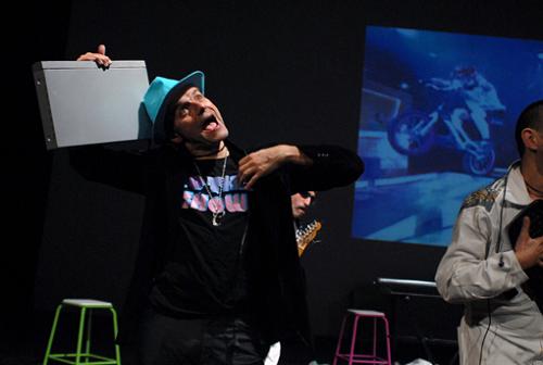 S’il faut saluer l’ambition de la démarche, voire le courage de s’attaquer à ce qui relève très clairement du paradoxe (mettre en spectacle la critique de la société du spectacle), on ne peut cependant que regretter les quelques facilités de la création de David Ayala. Facilités du montage superposé d’images de campagne de personnalités politiques (Nicolas Sarkozy, Ségolène Royal, François Bayrou) et d’émissions de télé-shopping ; facilité du discours moqueur envers l’art contemporain (ironie éculée sur le dripping ou le minimalisme) ; facilité de la dénonciation de la société de consommation (discours publicitaires débités tous en même temps par des comédiens arborant tenues fluos et autocollants promotionnels) ; facilité des ruptures de rythme entre passages très littéraux dans lesquels les acteurs lisent des extraits de textes de Debord et moments divertissants où des titres populaires (Femme Like U, C’est bon pour le moral) sont entonnés.