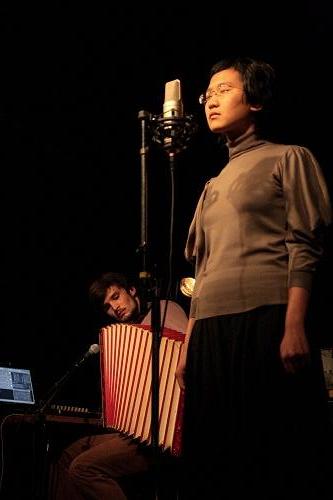 Avec 12 Dog Cycle, on aborde un projet d’une toute autre ampleur. Lui, Nigel Brown, à l’accordéon, laptop, brosse à dent et micro-contact, elle, Alice Hui-Sheng Chang, uniquement à la voix. D’abord les frétillements de la brosse à dent qui s’amplifient petit à petit sous forme de claquements rythmiques, de longues nappes graves d’accordéon, lentes et menaçantes, et puis Alice qui ajoute dans un premier temps sa respiration, des piaillements, puis des cris stridents. Il y a dans cette musique un mélange de douceur et de violence, le tout mené avec un minimalisme apaisant. Si la formule laisse au final un étrange sentiment qui nait de ce contraste, il nous reste de cette prestation le souvenir d’une infinie beauté. Un projet exigeant à suivre !