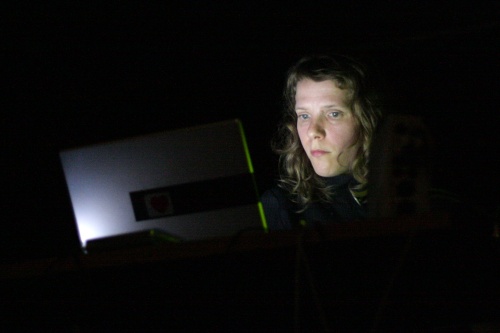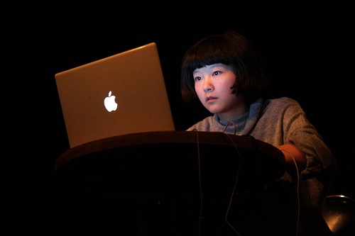 Découverte ensuite avec Zrl, un jeune homme seul au laptop, qui joue dans un registre plutôt noise. Début timide à base de basses sourdes et souffle ambiant dont les couches semblent se superposer et se durcir. Le résultat obtenu à son apogée est finalement assez classique avec une énorme et dense texture bruitiste, saturée, grave, dont le son semblera être filtré par la suite, devenant plus aigu, comme un sifflement perçant mis en relief par de graves bouillonnements.