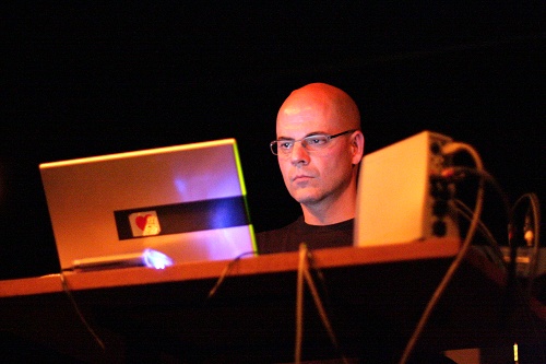 Jean-Philippe Renoult ensuite que l’on avait déjà pu voir sur scène en tant que Jopo Stereo au Project 101. Configuration classique du laptopeur avec ici un set jouant sur les sonorités, les tonalités, oscillations, croisements et rencontres. Quelques voix extraites de discours, nappe épurée oscillante, et réguliers vrombissements sont les trois seuls éléments qui ouvrent ce set. Lorsque la voix dit "There you are !" une nouvelle nappe sinusoïdale prend place, et l’ensemble évolue imperceptiblement. Les oscillations semblent s’accélérer, s’emmêler, s’appliquer aux basses, et la répétition ajoute encore au côté tribal, évoquant les tournoiements d’un didjeridoo. Excellent concert malheureusement un peu perturbé en plein milieu de concert par un bruitiste plantage d’ordinateur.
