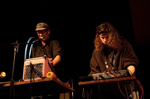 La soirée se terminera avec Sonic Surgeon et Futsukayoi Kaprikorn. On découvrira également le duo sur scène, Sonic Surgeon jouant dans un registre électro-rock expérimental très influencé par la new wave. On pensera d’ailleurs souvent à Joy division pendant ce concert. Futsukayoi Kaprikorn est un autre projet de Un Escargot Vide ?, beaucoup plus orienté electronica ludique, au sens propre d’ailleurs avec cette fois deux Nintendo DS. Leur concert est une série de chansons électro-rock aux sonorités électroniques brutes et rétro, au chant à la fois caverneux et métronomique, avec quelques originalités, en particulier quand Sonic Surgeon se servira d’un tuyau en plastique comme d’un cor. Un mélange intéressant mais on regrettera cette trop forte influence new wave.