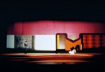 Usant d’un burlesque bien senti dans quelques répliques (« C’est la première fois que ma mère meurt » constate ainsi Simon) et quelques situations (apparition d’une bimbo siliconée ou d’une femme à tête de chien), la partition théâtrale se fait globalement trop étirée, trop distendue, jusqu’à user le spectateur, lassé par des répétitions qui n’en finissent plus (« Et je bave » prononcé une bonne vingtaine de fois par la femme-chien en l’espace de cinq minutes) et des scènes dont la durée idoine n’est que rarement trouvée. En outre, on ne sera pas surpris d’apprendre que la mère de Simon était en réalité son père (et vice-versa), ne s’étonnant plus de cette forme de surenchère qui, cependant, ne bascule pas dans le grand-guignol. Peut-être aurait-il fallu d’ailleurs, plutôt que cet entre-deux qui nous a finalement profondément ennuyés…