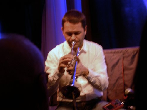 Pour les titres mélodiques, l’alliance trompette-accords de guitare subtilement grattés prit une ampleur parfaitement relayée par la configuration du club de jazz : salle en rond, son impeccable, attention du public, discrétion du bar et des serveurs. Dans les passages improvisés, Henriksen n’hésita pas à retirer l’embouchure de son instrument afin de le détimbrer et de jouer sur le souffle passant par les coulisses, les tapotements de ses doigts sur les pistons, voire le crissement du pavillon frotté contre le micro. Pour renforcer cet aspect percussif, il invita également les spectateurs à faire tinter en rythme verres et bouteilles avant de chanter à travers sa trompette. Plus tard, ce fut la célèbre Berceuse de Brahms (Wiegenlied : Guten Abend, gute Nacht) qu’il fit reprendre par l’assistance alors qu’il improvisait par-dessus. En guise de rappel, Henriksen tenant à ce que Sten soit mis en avant, le premier délaissa sa trompette pour se mettre à chanter d’une jolie voix de tête pendant que le second installait, à partir de son clavier, de sombres et profondes nappes.