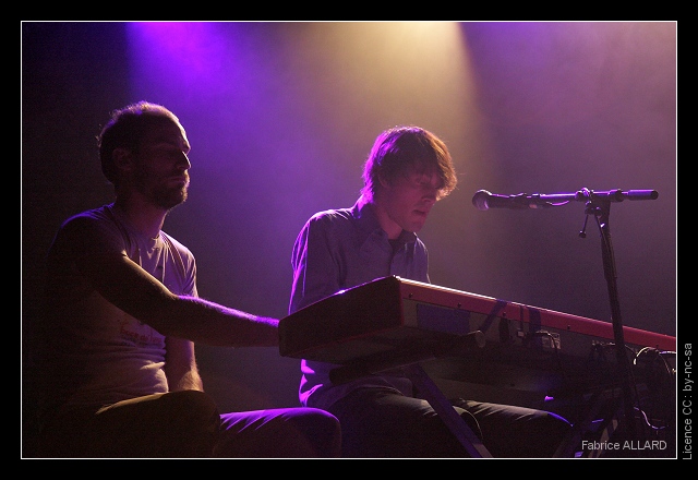 Découverte donc ensuite avec Lightning Dust. Il s’agit d’un quatuor mené par Amber Webber (guitare et chant) et Joshua Wells (clavier), tout deux membres du groupe psyché-rock Black Mountain. Ils sont ici accompagnés d’une bassiste et d’un batteur et jouent dans un registre plutôt pop-folk. Le concert débute tout juste quand on entre dans la salle, le public est assis et écoute religieusement une musique calme et fragile. Pour nous, la formule repose énormément sur les deux membres fondateurs avec d’une part des claviers mêlant sonorités rétro et envolées tournoyantes, et d’autre part la voix d’Amber Webber au vibrato déconcertant. Ce dernier y est certainement pour beaucoup dans la fragilité que dégage leurs chansons.