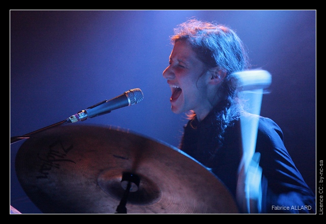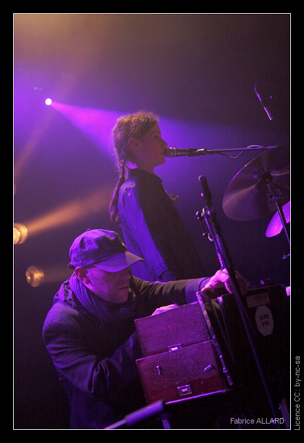 C’est donc le duo franco-israélien Winter Family qui ouvre la soirée. Si la configuration de Xavier ne change pas (orgue, harmonium), on remarque que Ruth fait de plus en plus appel aux percussions, avec tambours et cymbales autour d’elle alors que la première fois qu’on les voyait en concert elle était statique, assise sur sa chaise et ajoutant quelques tintements de clochettes sur des pièces minimales. Une suite logique à un procédé déjà initié lors de leur concert au Café de la Danse en première partie des Legendary Pink Dots.