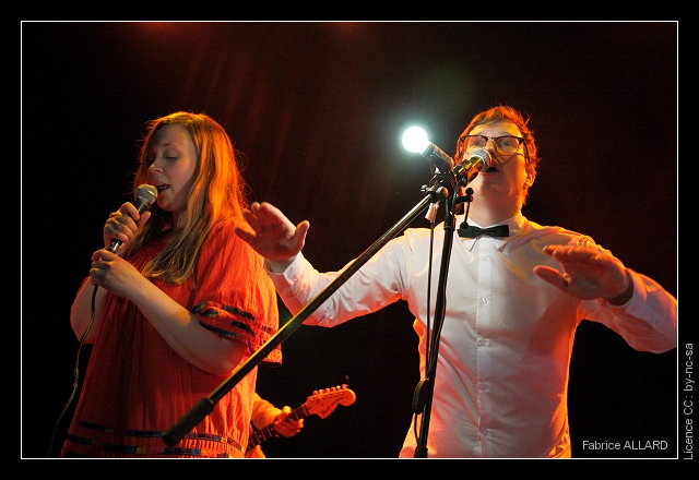 C’est en effet surtout pour FM Belfast que l’on était là, quintet islandais formé autour de Árni Rúnar Hlöðversson (laptops, machines) et Lóa Hlín Hjálmtýsdóttir (chant), cette dernière étant également responsable des illustrations de l’album. Il s’agit d’une formation largement consacrée aux machines avec quatre membres en front de scène, le cinquième derrière, est à la guitare mais on aura un peu de mal à apprécier sa part de travail. Le combo islandais produit une musique que l’on qualifiera tout simplement d’électro-pop sur disque, quasiment parfaite avec des morceaux de 3mn et des mélodies accrocheuses. Sur scène c’est un peu différent : les rythmiques sont mises en avant et tapent fort, on serait tenté de parler de techno-pop et de les rapprocher des anciens fameux Gus Gus. Le rapprochement techno se concrétiser d’ailleurs alors que le chanteur-meneur propose, au bout de 3-4 titres, de faire une rave.