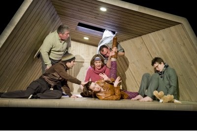 En revanche, lorsque le grenier sort de sa destination première, lorsqu’il devient, pour une ou deux saynètes, refuge de montagne ou ascenseur d’hôtel, on tient quelque chose de plus intéressant, mais cette veine s’avère trop peu suivie par l’auteur. La langue de celui-ci nous a également posé quelques difficultés (peut-être dues à la traduction, laissons planer le doute), principalement dans son impossibilité à s’en tenir à la suggestion, obligée qu’elle est de tout surligner : des phrases comme « Une fois au sommet/On regarderait lentement autour de nous/À 360 degrés » ou « J’ai lâché le groupe et pris de l’avance/J’avais un besoin pressant/Genre grosse commission » auraient largement pu faire l’économie de leurs derniers membres. De même, quand Sakate s’essaye à des réminiscences historiques, faisant lire le Journal d’Anne Frank par une jeune hikikomori, comparant de facto leurs deux enfermements, on ne peut suivre le dramaturge. Celui-ci pâtit aussi (malgré lui, pour le coup) de résonances avec l’actualité : la scène où intervient un pervers séquestrant une jeune fille dans son grenier renvoie évidemment le spectateur à Natascha Kampusch, Elisabeth Fritzl et Jaycee Lee Dugard. Et, là encore, la mise sur le même pied d’ados immatures et asociaux et de victimes d’enlèvements et de crimes nous laissa sur le bord de la route.