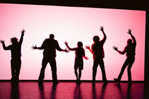 Sur un plateau éclairé par un grand caisson lumineux situé en fond de scène, cinq danseurs hip-hop évoluent pendant une petite heure, juste armés de cubes lumineux et de leur belle énergie. La souplesse plastique de leurs corps les amène jusqu’à une forme de désarticulation ou d’effets quasi-aquatiques par une ondulation assez impressionnante de leurs membres, tandis que la source lumineuse change de couleur et sert à découper leurs silhouettes à la manière d’ombres chinoises contemporaines. Plus encore, le dernier tableau propose un effet stroboscopique avec, à chaque flash blanc, la capture aérienne d’un saut de l’un des danseurs, si bien qu’on a l’impression que celui-ci vole pour traverser le plateau de jardin à cour. Ce travail sur la lumière connaît donc une résonance via les petits cubes lumineux virevoltant d’une main à l’autre dans une démarche proche du « light painting ».