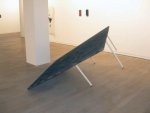 Encore plus attaché à la matière, et notamment aux composantes génératrices de celle-ci, Gyan Panchal accroche au mur deux cartouches d’imprimante, l’une telle quelle, juste surmontée d’un fusain, et l’autre comme moulée dans de l’argile, histoire de matérialiser le toner, grand producteur de noir. Enfin, Clément Rodzielski présente une table, avec un grand plateau noir, mais dont le piètement est difforme, bancal, comme pour rappeler que le noir est justement la teinte de l’irrégularité, de l’accident.