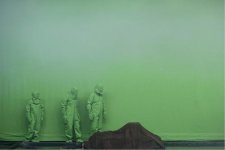 Pour autant, au-delà de ces effets réjouissants, on se situe, avec ce nouveau spectacle, plus proche de l’installation d’art contemporain que du théâtre (l’amoncellement de canots pneumatiques comme écho au Consigne à vie d’Arman, cet amoncellement de valises que l’on peut voir devant la parisienne gare Saint-Lazare). De fait, les acteurs passent davantage de temps à installer des objets, mettre en place des situations ou changer de tenue qu’à en faire véritablement quelque chose. On en vient donc à déplorer l’absence de ce fil narratif qui permettait à L’Effet de Serge et à La Mélancolie des Dragons de dépasser le stade du bricolage amusant. Volonté de radicaliser son propos ou essoufflement de sa mécanique ? Le prochain spectacle de Philippe Quesne le dira mais, en toute hypothèse, pour celui-ci, on se voit contraint de se ranger aux côtés de la majeure partie de la critique qui avait modérément accueilli Big Bang à Avignon cet été.