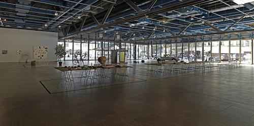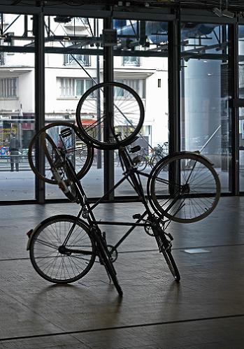C’est acquis : les artistes conviés à présenter une rétrospective de leur travail veulent échapper à toute muséification. Certains laissent ainsi de côté leurs œuvres les plus connues tandis que d’autres en profitent pour repenser l’espace d’exposition ; c’est précisément le cas de Gabriel Orozco. Bien secondé par la commissaire Christine Macel, le Mexicain montre à Paris une version très différente de la monographie ayant précédemment fait escale à Bâle et au MOMA. Située Galerie Sud, l’exposition veut profiter de ses larges baies vitrées pour apparaître comme un prolongement de la rue. Par conséquent, les pièces sont présentées à même le sol ou sur des tables d’atelier. Seuls quelques photos et dessins ornent les deux pans de mur restants et aucun cartel ne vient guider le spectateur qui doit alors utiliser le dépliant remis à l’entrée pour se repérer. Signalons, pour terminer cette présentation formelle, qu’une ligne noire délimite les espaces où sont installés les objets et qu’une intrusion à l’intérieur de ceux-ci occasionne une remise à l’ordre de la part de deux faux policiers mexicains en faction dans la Galerie.