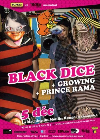 Afin de monter encore d’un cran dans la puissance sonore, Black Dice, le dernier trio du soir, était chargé de conclure. Bien que ce fût la première fois que nous vîmes les New-Yorkais, nous imaginions très bien que nos sens allaient être soumis à rude épreuve. De fait, pour schématiser, on pourra exposer que le groupe alterna passages très bruitistes et moments très très bruitistes. Un employé de la salle passa même dans les rangs, dbmètre à la main, pour constater que le niveau oscillait entre 99 et 105 db. Déchaînements psychés, assauts rythmiques et noyage des instruments sous les effets furent ainsi convoqués pour offrir une cinquantaine de minutes aussi secouantes que performatives.