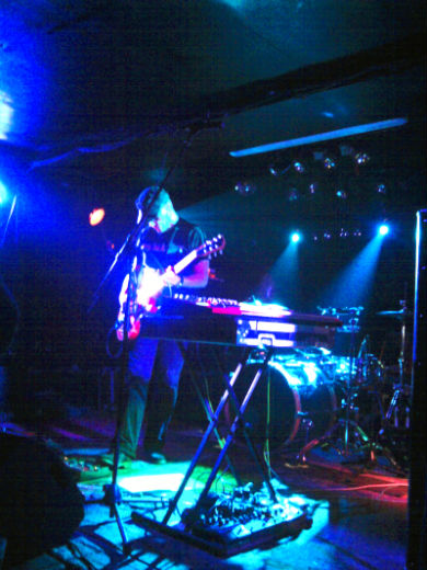 Vient ensuite, après une attente un peu trop longue, le trio italien Aucan. Auteur de deux albums, dont le tout récent Black Rainbow, il propose une musique difficilement catégorisable, au point que de nombreux qualificatifs circulent pour la définir : post rock, math rock, dubstep, electronica/IDM... On a en réalité affaire à un trio complice batterie-guitares-claviers délivrant, sur un soubassement post rock (math rock ?) nerveux et enjoué, diverses excursions conduisant à un croisement de genres, avec d’intéressants gimmicks bricolo aux claviers. Les morceaux, relativement courts, s’avèrent enlevés et plaisants, quoiqu’inégaux, la voix en particulier - somme toute peu présente - passant relativement mal. Tantôt un peu approximative, tantôt présentant une réelle osmose entre trois comparses enthousiastes, la musique des transalpins - qui aurait certainement toute sa place sur une structure telle Thrill Jockey - emprunte à de nombreuses chapelles et picore dans diverses auges, pour un résultat probant mais pas inoubliable.
