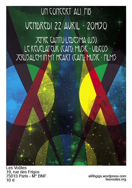 Le rendez-vous était pris pour ce qui était malheureusement le dernier concert ali_fib avant une pause d’une durée indéterminée. Pour cette dernière affiche, nous faisions surtout le déplacement pour Jefre Cantu-Ledesma, un habitué de ces pages, que ce soit pour ses récents travaux solo ou ses projets connexes que sont notamment Colophon et Tarentel. Ce fut donc l’occasion de découvrir Le Révélateur, projet solo de Roger Tellier-Craig, connu quant à lui pour être le fondateur de Fly Pan Am, et membre un temps de Godspeed You ! Black Emperor.