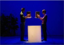 Ainsi les deux compères vont-ils bricoler une faille spatio-temporelle, comparer trous noirs et trous dans le gruyère, faire intervenir un robot ayant réussi à se transformer en homme dans une émission de témoignage radio, jouer des instruments de musique du futur sur des plantes vertes, transporter le mythe de Tristan & Yseut dans un univers rempli de cartes mères et de bioports, retracer la biographie de Bill Gates jusqu’en 2095 ou jouer en quasi-simultané une scène d’attaque d’une base spatiale en VO et en VF. Drolatique et décalé, convoquant aussi bien des aspects low-tech qu’une culture geek, le spectacle réjouit par sa fraîcheur, son rythme et son enthousiasme communicatif mais sait se faire aussi gentiment sarcastique à l’heure du tout-digital.