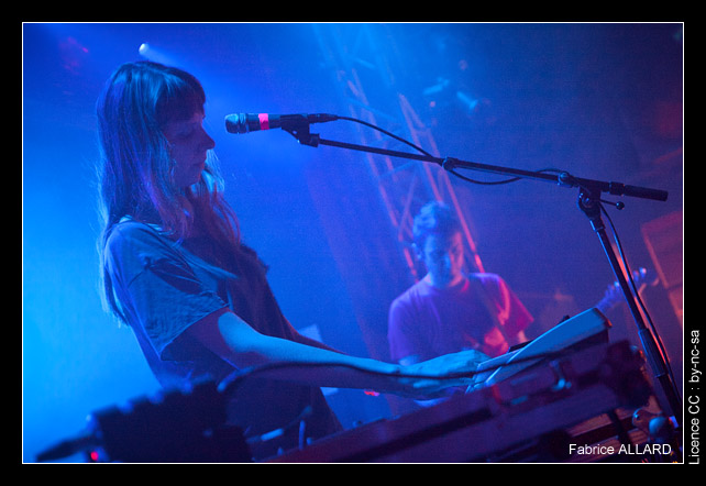 Pour le coup ce fut une excellente surprise. Cercueil est un trio lillois mené par Nicos (guitare, basse), Olivier (batterie) et Pénélope (chant, clavier). On sera d’abord gêné par le son qui nous apparaitra brouillé (brouillon ?), noyé, aux tendance bruitistes, mais duquel ressortent les éléments clés : une rythmique puissante, une batterie martelée qui tient l’ensemble, des mélodies et arpèges électroniques qui apportent un peu d’air en jouant sur la légèreté, et le chant bien sûr, puissant, affirmé, d’une voix grave, profonde qui n’est pas sans rappeler Siouxie Sioux. L’ensemble forme une électro-pop noisy légèrement teintée cold wave, du plus bel effet, et même plutôt dansante avec quelques tubes comme After Dark.