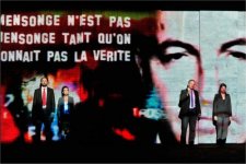 Placés devant ce mur d’images qui, entre chaque scène jouée, diffuse des extraits, forcément caricaturaux, des journaux de Fox News, les six comédiens font ce qu’ils peuvent entre ce texte pas toujours bien structuré et une direction d’acteurs qui les conduit à être en permanence face au public. Cette forme de prise à témoin des spectateurs peut également être considérée comme un élément supplémentaire dans la constitution d’une charge un peu lourde. Ce risque, forcément inhérent à ce type de proposition naturellement située « du bon côté du manche » (surtout quand, publiée en 2010, elle est écrite une fois que les masques sont tombés) n’est donc nullement écarté dans Hôtel Palestine.