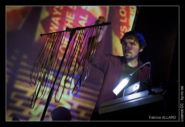Dan Hayhurst semblait quant à lui piocher des bandes magnétiques au hasard sur un pupitre, celles-ci lui servant de boucle sur lesquelles se superposaient basses et rythmiques. Là aussi un esprit pop bariolée empruntant aux plunderphonics qui intrigue dans un premier temps, mais qui ne tardera pas à convaincre le public, réceptif à cet approche ludique et à l’énergie que dégageait le duo. Ce n’est pas forcément le genre de musique que l’on écoutera chez nous, ou même que l’on écoute habituellement, mais on reconnaitra que ce concert réunissait tous les éléments contribuant à faire un concert réussi.