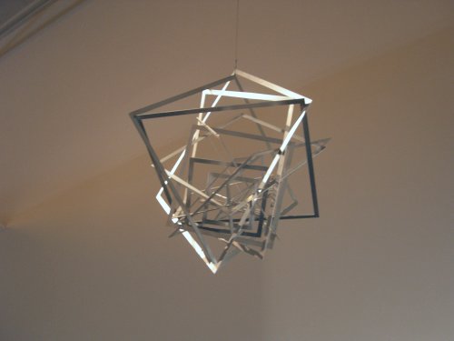 Ainsi perdu dans le dédale des cités, le spectateur restera décontenancé en montant à l’étage, dans l’espace consacré à la cinétique avec les mobiles de Gianni Colombo, les clous plantés en spirale de Günther Uecker ou les travaux de Vera Molnár. Plus encore, la superbe suite de pièces de Julio Le Parc nous plonge dans des espaces de jeux entre miroirs, lumières et plaques de métal scintillantes. Particulièrement saisissantes, nous faisant aisément perdre nos repères, ces créations manifestent également la possible sortie du labyrinthe, à l’inverse des casiers grillagés de Mona Hatoum qui marquent plutôt sa dimension carcérale.