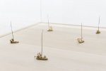Puisqu’il faut bien traverser la mer pour arriver à cette île, plusieurs d’entre eux travaillent cette question et opèrent dans le champ lexical maritime. Uriel Orlow met ainsi en place une installation narrant l’immobilisation de cargos sur le canal de Suez, Amalia Pica se représente, sur une grande photographie, face à la mer, un mégaphone à la main, Susan Hiller regroupe des agrandissements de cartes postales de mers déchaînées et Bethan Huws met en vitrine des petits bateaux réalisés à partir de jonc tressé.