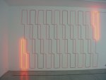 Dans ce panorama assez complet, quelques regrets poignent néanmoins, et notamment celui que les éclairages du bâtiment, purement fonctionnels, prennent quelquefois le dessus sur les formes artistiques. Ainsi, le néon torsadé de Mathieu Mercier se trouve enroulé autour d’un tube rectiligne allumé, lui-même placé au milieu d’une enfilade d’autres tubes. De même, certaines œuvres souffrent soit d’un accrochage pas forcément très heureux, à l’instar du Rêvez ! de Claude Lévêque, écrasé dans une pièce du sous-sol au plafond très bas, soit des grandes salles dans lesquelles les néons finissent par s’éclairer les uns les autres et ne plus rendre appréciable un Dan Flavin par exemple, phagocyté par les autres interventions. En outre, le dernier espace, consacré à la « lumière brisée » fait un peu fourre-tout, mélangeant l’éblouissement des dizaines de tubes d’Andrea Nacciariti fourrés dans une même caisse de transport ou fagotés par Monica Bonvicini, l’écriture en néon de Melik Ohanian et la destruction des tubes dans la vidéo de Delphine Reist ou sur la photographie de Michel François.
