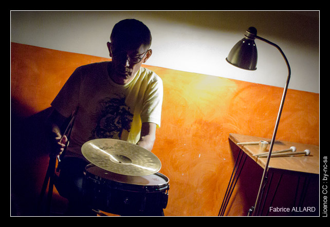 Retour aux instruments, de manière un peu plus classique ensuite puisque Murayama frotte un archet contre la tranche d’une cymbale. Le son oscillera ici entre métallique et douceur étouffée suivant que la cymbale flotte dans l’air ou vient coller la caisse claire. Le passage le plus intéressant sera le duo entre résonance métallique de la cymbale et la voix du japonais, tentant de rentrer en phase avec l’instrument. La dernière séquence sera plus classiquement percussive avec baguette et balai, jouant notamment sur un contraste entre lents frottements et coups secs, le tout ponctué de silences à l’image de l’ensemble de ce concert contemplatif, à l’esprit zen.