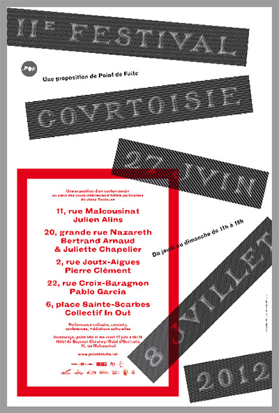 Le Festival Courtoisie a pour vocation d’investir des cours intérieures d’hôtels particuliers du vieux Toulouse afin d’y présenter des créations contemporaines de jeunes artistes de la région. C’est l’association Point de Fuite qui est derrière ce projet, rassemblant un groupe d’étudiants qui tout au long de l’année organisent des projets artistiques.