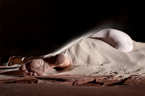 Si la désignation d’ « installation chorégraphique » proposée par le programme de salle peut sembler un peu pompeuse a priori, il est vrai qu’elle correspond plutôt bien à la proposition de Marta Soares. Allongée sur une grande table et recouverte de sable, la Brésilienne n’en bougera pas mais son corps sera progressivement dévoilé, à mesure qu’un large ventilateur soufflera le sable. En écho à cette divulgation, des vidéos sont projetées sur deux grands écrans : un rien tautologiques, celles-ci sont concentrées sur des vestiges préhistoriques indigènes balayés par le vent. Autre composante du dispositif, plus intéressante, la bande-son mêle captations du vent et du souffle de la nature avec quelques crépitements et autres samples pour un résultat à la fois enveloppant et inquiétant. Même réussite pour le jeu sur la lumière, les éclairages conduisant le sable à prendre des teintes tantôt blanches, tantôt mordorées ou jaune vif.