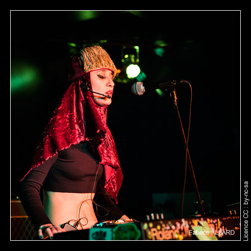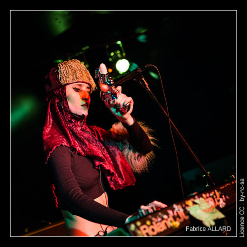 Vers 21h Alex June prend place. On n’est pas vraiment surpris par le matériel, entre claviers, effets et laptop, mais la jeune femme a abandonné son justaucorps bleu au profit d’une nouvelle tenue aux airs de déesse égyptienne avec frange à paillette et contour des yeux nettement souligné. En a peine deux mois, bien évidemment la musique n’a pas changé, mais le passage du showcase intimiste à la salle de concert avec un gros son ne laisse pas indifférent. Les claviers prennent leurs aises et délivrent des mélodies à la fois pop et puissantes. Et quand le tempo se fait un peu plus soutenu, que les chansons se font sautillantes, on a l’impression d’abandonner un peu les années 80 au profit d’une électro-pop dansante, voire technoïde.