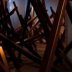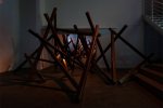 Au-delà de cette corrélation, Virginie Yassef profite aussi du volume et de l’espace que lui offre la Ferme du Buisson pour mettre en place Le Château de l’Araignée, enchevêtrement de poutres affublées de haut-parleurs diffusant bruits de pas, frottements et coups de bâton. Obstruant et contraignant le déplacement du spectateur, cette installation se veut un écho à Passe Apache, le fameux rocher pivotant qui se bougeait d’un doigt que la jeune femme avait présenté à la Fondation Ricard. Naviguant dans les deux salles accueillant ce Château de l’Araignée, le public est également convié à se souvenir du film de Kurosawa et à imaginer que les bruits entendus proviennent de duels entre samouraïs.