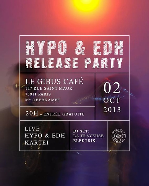Nous avions eu droit à une preview du nouvel album de Hypo & EDH en juin dernier à l’Espace B (soirée non chroniquée). Nous étions ce soir à la soirée de lancement de Xin que nous n’avons pas encore écouté alors que l’on rédige ces lignes. Cette soirée était également l’occasion de découvrir le Gibus Café, un nouveau lieu du quartier d’Oberkampf ayant ouvert ses portes en juin dernier. Et pour finir, on découvrait Kartei, un duo que l’on qualifiera de techno-pop, venu en support de Hypo & EDH.