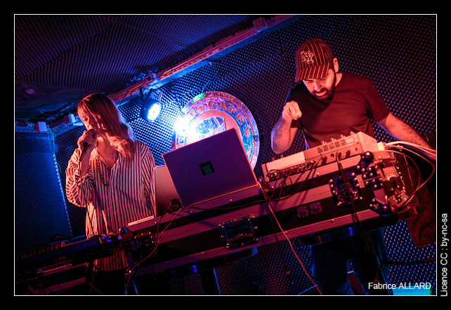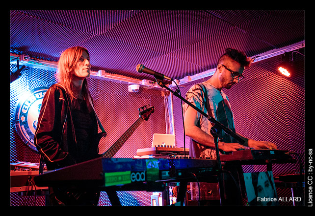 Il doit être 21h30 bien tassée quand Hypo & EDH prennent place derrière leurs machines. Ils changeront régulièrement de rôle durant leur concert, échangeant leur synthés, passant tour à tour à la basse, EDH étant en permanence au chant et Hypo gardant pour lui son ukulélé électronique et autres machines.