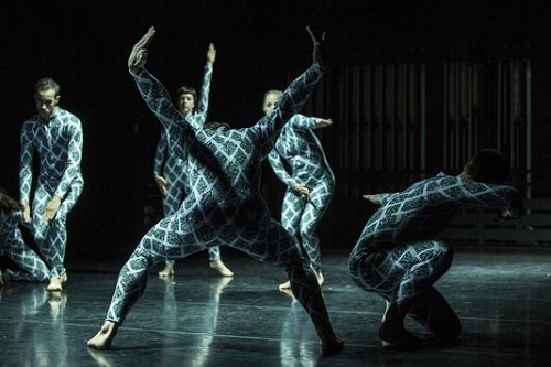 Au soutien de leurs déplacements, la musique de Carla Scaletti, forgée à partir de nombreux crépitements et clicks’n’cuts, vient habilement s’inscrire dans un ensemble fort cohérent. Cohérence qui se fait encore plus pertinente dans les mouvements de groupe, notamment dans de très belles suites de gestes, bras tendus à la perpendiculaire, faisant une sorte de chaîne (chaque paume étant posée sur l’épaule du voisin) qui se tord façon double hélice de l’ADN. Se mettant ensuite en cercle, les danseurs vont positionner leurs mains comme s’ils entouraient une boule de feu (un noyau atomique ?) qu’ils évitent et déplacent en même temps. Vêtus de combinaisons à losanges recouvrant presque tout leurs corps, les six intervenants font alors figure de cobayes de laboratoires, tentant de maîtriser des éléments nucléaires et électriques qui, malgré tout, ne sont pas loin de les dépasser.