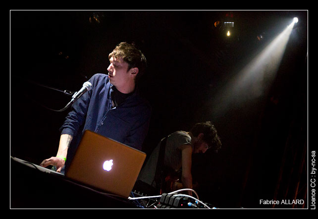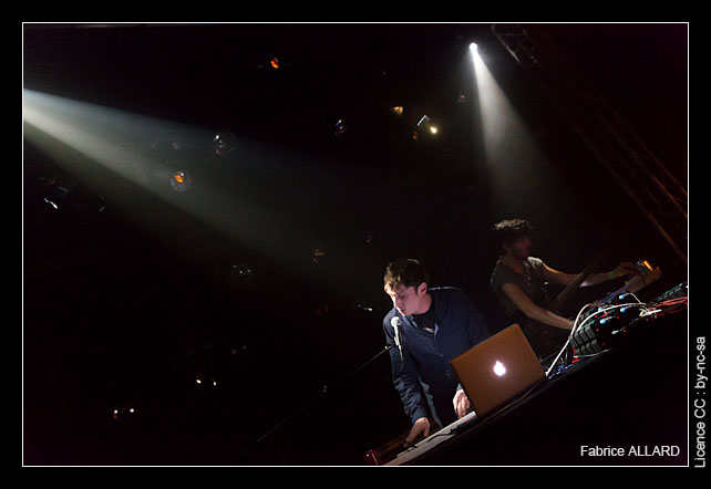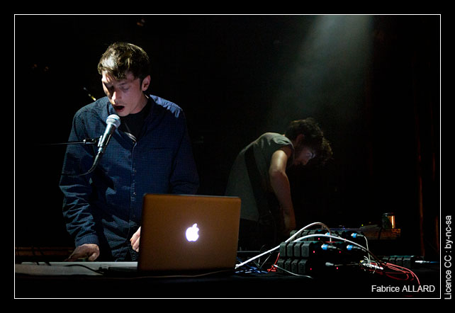 Le premier représentant du label de Besançon à monter sur scène est Mayerling, auteur de l’album Cut-Up sorti en 2013. Les deux français livrent une performance particulièrement contrastée. Parfois au bord de l’ambient, parfois rythmée de pulsations, leur musique prend la forme d’une sorte de synth-pop hybride et downtempo. Il arrive qu’un moment capte l’intérêt, qu’un air de xylophone fasse bouger la nuque, mais souvent l’indifférence guette, en particulier lorsque l’un d’eux accompagne leur musique de son chant d’une emphase vaguement gutturale.