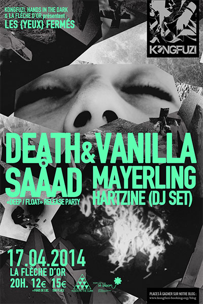 A l’occasion de la sortie de Deep/Float, le nouvel album de Saåad, le label Hands In The Dark investit la Flèche d’Or. Cette release party convie également Mayerling et Death And Vanilla et s’affiche comme la dernière soirée « Les yeux fermés » organisées par Kongfuzi.