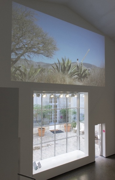 Plus métaphoriquement, la frontière peut aussi être vue comme la ligne de passage de la vie à la mort : traverser clandestinement au risque de se faire interpeller, ne plus évoluer dans son univers naturel au risque de ne pouvoir continuer à vivre ou continuer sa floraison mais mourir à terme. C’est précisément le sort des agaves, ces grandes plantes matières premières de la téquila qui ne fleurissent qu’une seule fois dans leur vie, laquelle floraison engendre leur mort. Pour stopper ce processus, le seul moyen est de couper la fleur, interrompant la reproduction mais permettant le maintien en vie pour quelques décennies supplémentaires. Adrien Missika s’y emploie donc dans Saving An Agave, vidéo où il taille la grande fleur d’agave à la machette, preuve que l’interaction homme/nature n’est pas toujours négative.