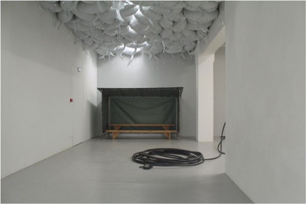 Ce même studio se trouve éclairé et ventilé par l’installation de Matthew McCaslin, combinaison d’horloges, ampoules et ventilateurs, qui occupe l’espace sans qu’on s’en rende tellement compte, un peu comme les Speech Bubbles de Parreno qui parcourent le plafond et qu’on ne perçoit que si on fait l’effort de lever la tête. Plus intrusif, Christian Marclay fait serpenter son Extended Phone dans une bonne partie de la pièce principale du centre d’art, manière allégorique de relier les différentes œuvres les unes aux autres et de souligner les échanges qui ont pu intervenir entre ces différents plasticiens.